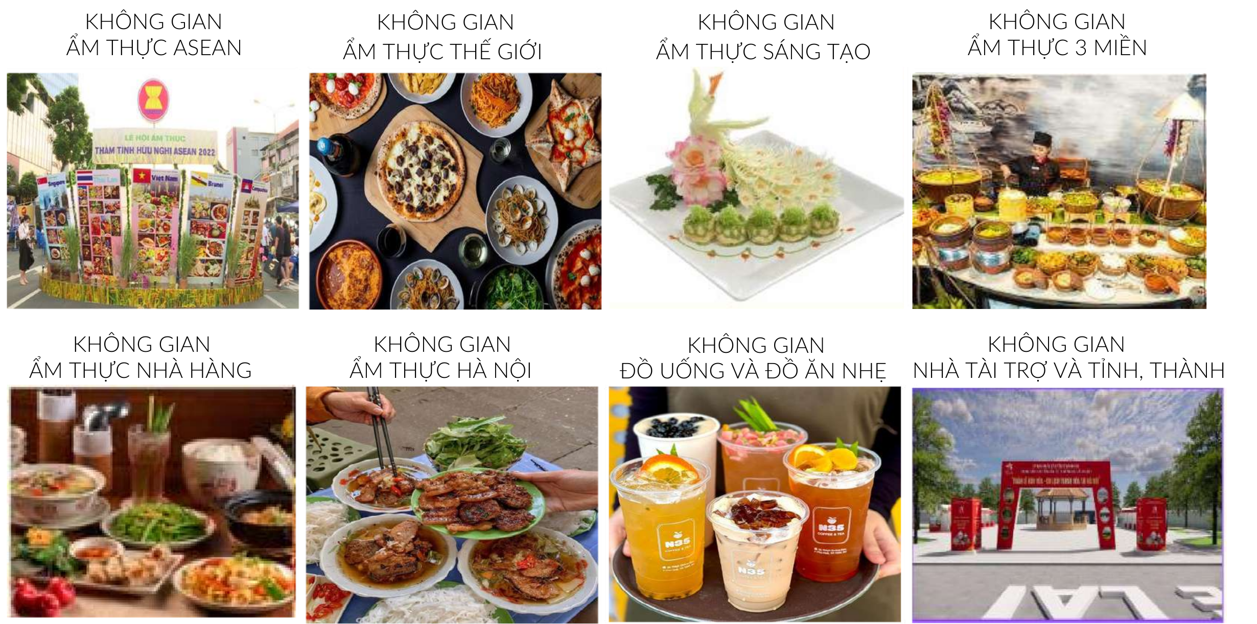 - Chuỗi gian hàng ẩm thực sẽ giới thiệu tới người dân Thủ đô và du khách từ mọi miền đất nước cũng như các du khách quốc tế về di sản văn hóa ẩm thực tiêu biểu của 3 miền Bắc, Trung, Nam.