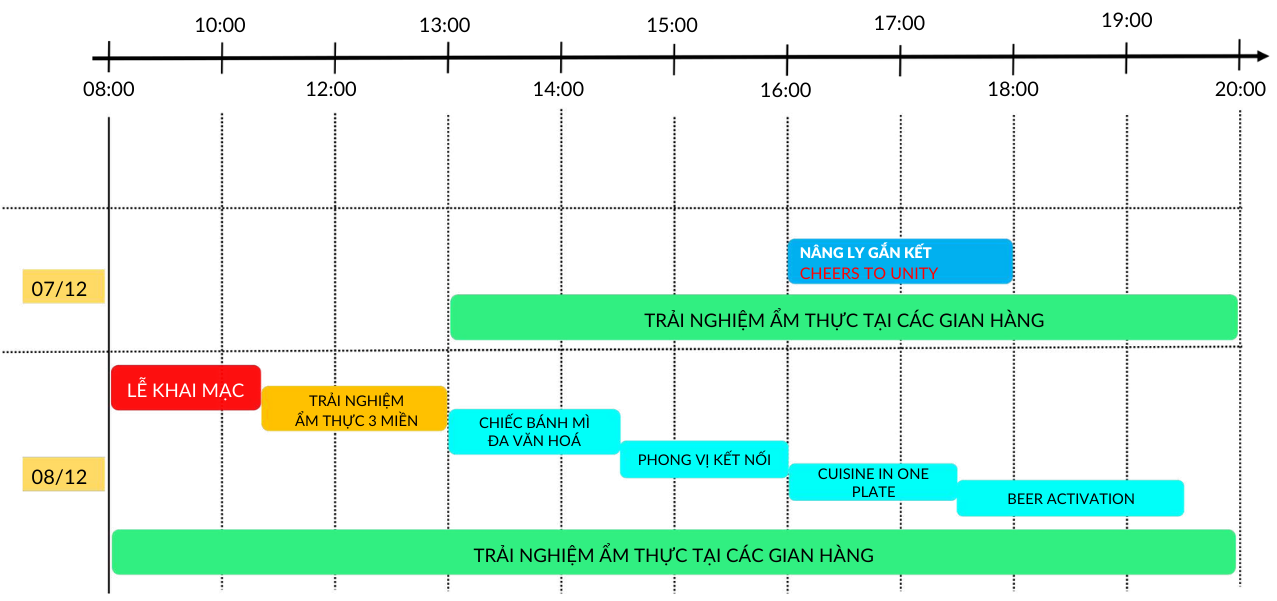 Hoạt động sẽ được diễn ra trong 2 ngày chính, thời gian hoạt động gian hàng từ 9:00 tới 20:00 để phục vụ du khách tham quan.